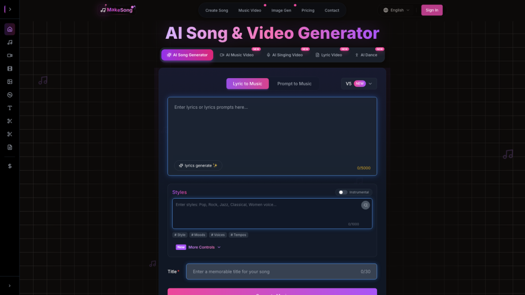 MakeSong is an innovative platform designed to help anyone create music quickly and easily using artificial intelligence. As a powerful AI Song Generator, it allows users to transform simple ideas or lyrics into complete songs with melody, instrumentation, and vocals. Whether you’re a content creator, marketer, or music enthusiast, MakeSong removes the technical barriers of music production and lets creativity take the lead.
